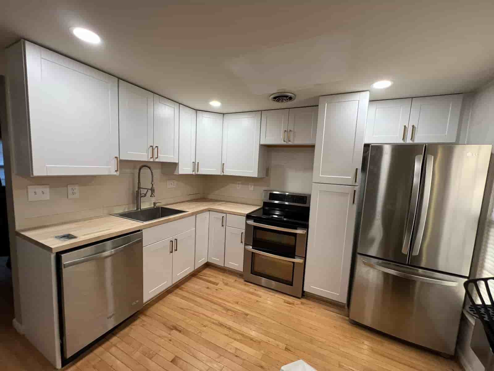 Flooring is typically installed last to avoid damage during cabinet work. Trim and baseboards are replaced or painted, and all surfaces are cleaned before the final walkthrough. The kitchen is left ready to use, with all outlets tested and plumbing checked for leaks.